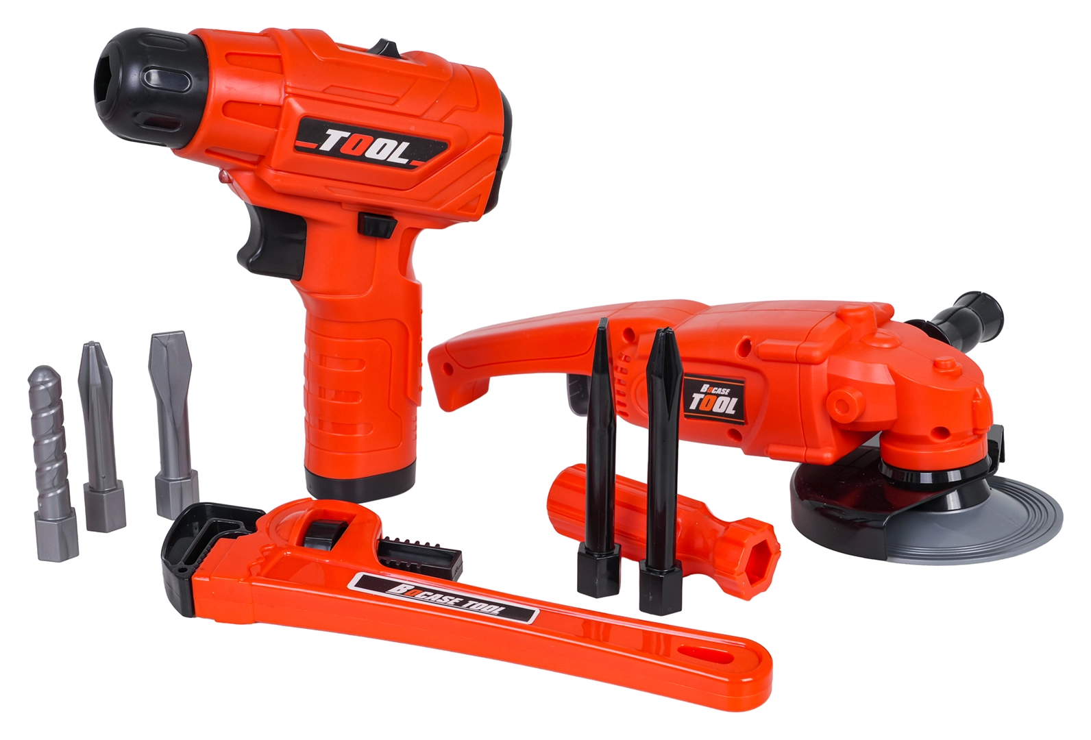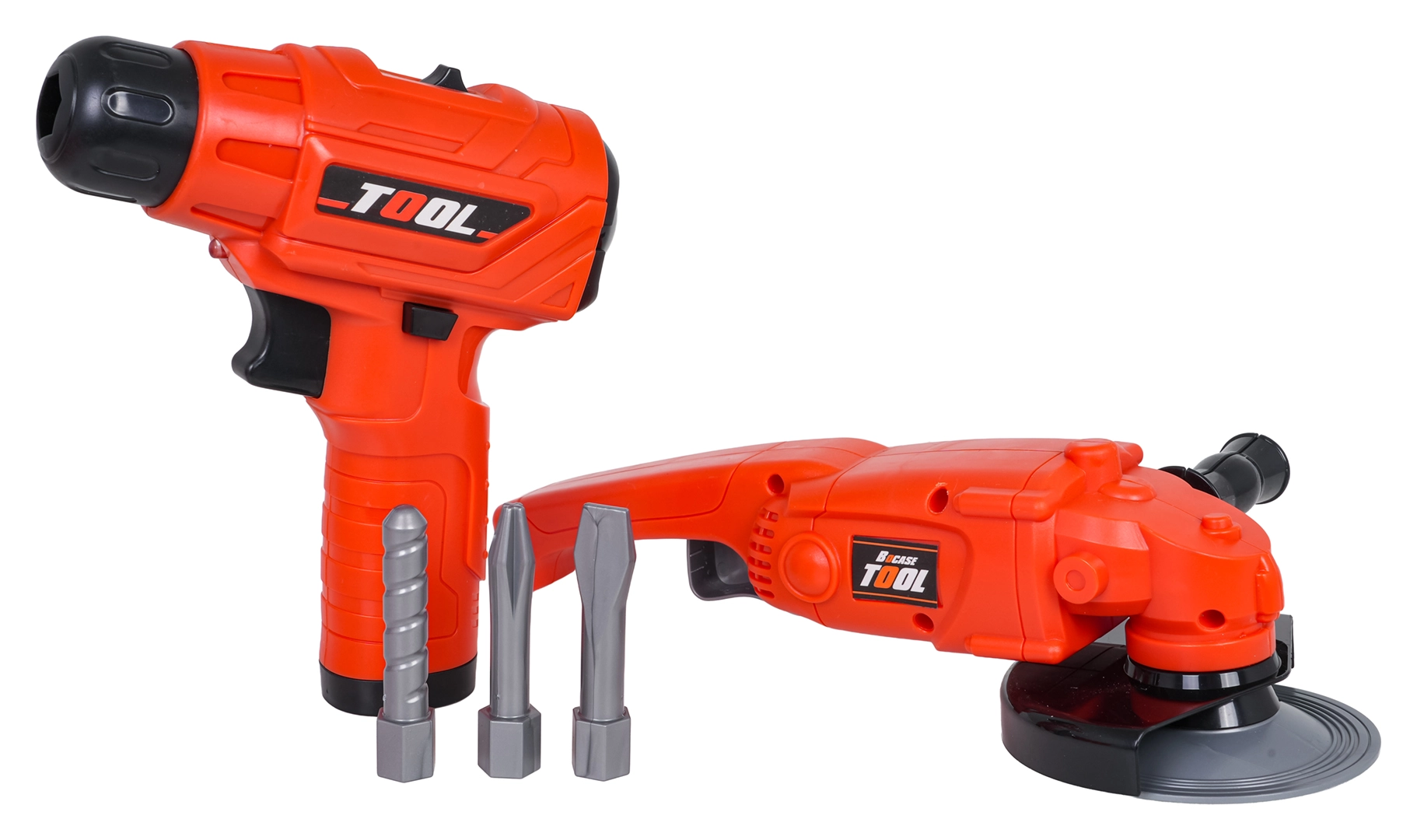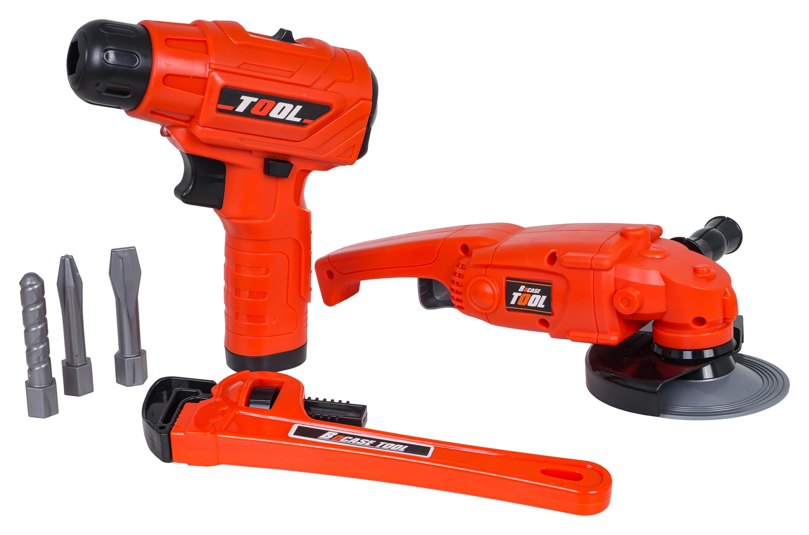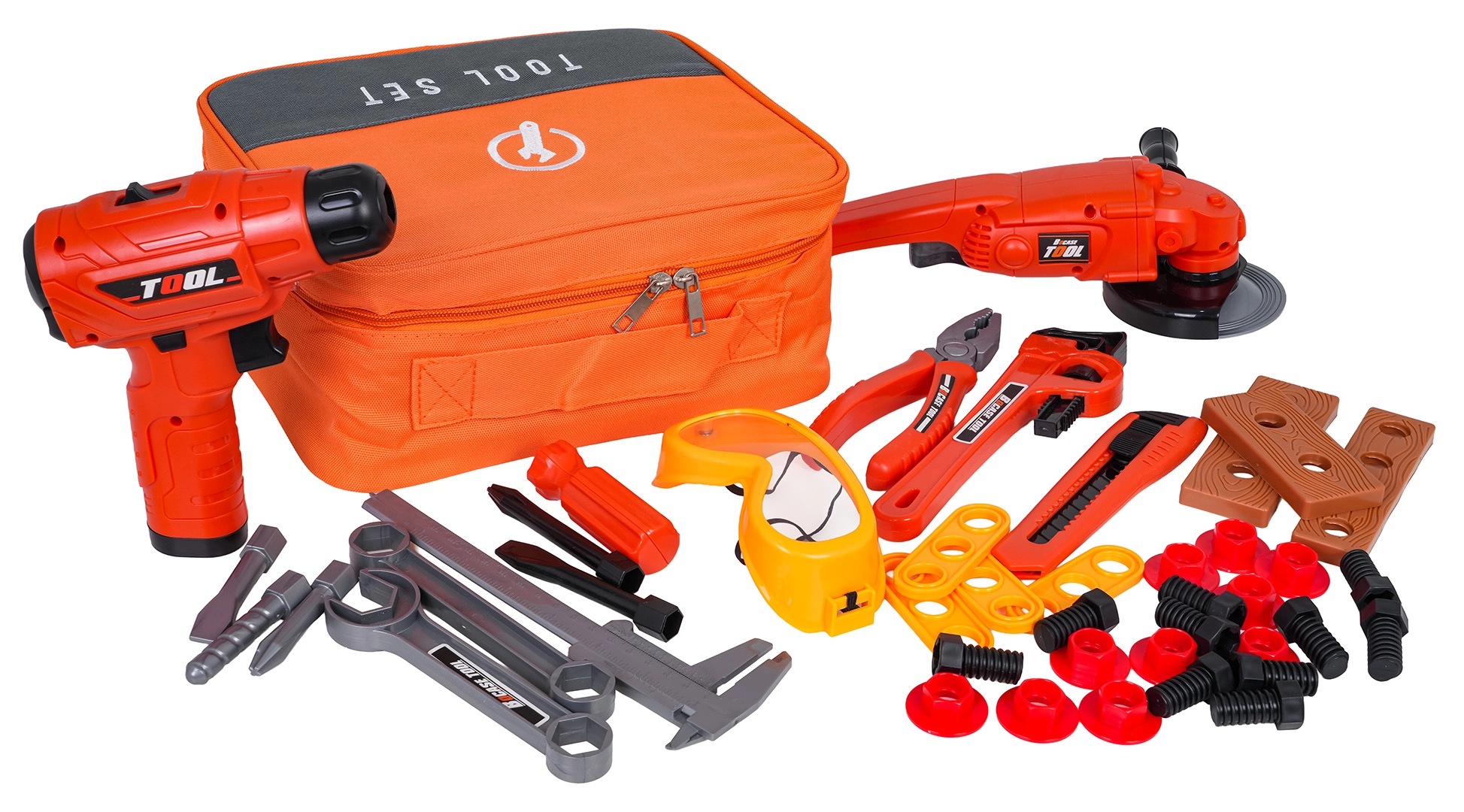 Bogato opremljen otroški komplet orodja s praktično torbo ponuja 42 delov za ustvarjalno sestavljanje in učenje skozi igro. Vsebuje akumulatorski vrtalnik/vijačnik na baterije z svetlobnimi in zvočnimi učinki, kotni brusilnik z ročno vrtljivim kolutom, ključe, klešče, zaščitna očala, vijake, matice in menjalne bite. Izdelano iz kakovostne varne plastike za otroke od 3 let naprej.