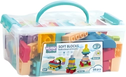 Set WOOPIE Soft Blocks otrokom prinaša veselje do ustvarjanja in učenja. Veliki, mehki in varni elementi v pastelnih barvah so prijetni za držanje in primerni za prve gradbene poskuse. Otroci zlahka zgradijo zgradbe, vozila in domišljijske modele ter pri tem razvijajo koordinacijo, potrpežljivost in sodelovanje.