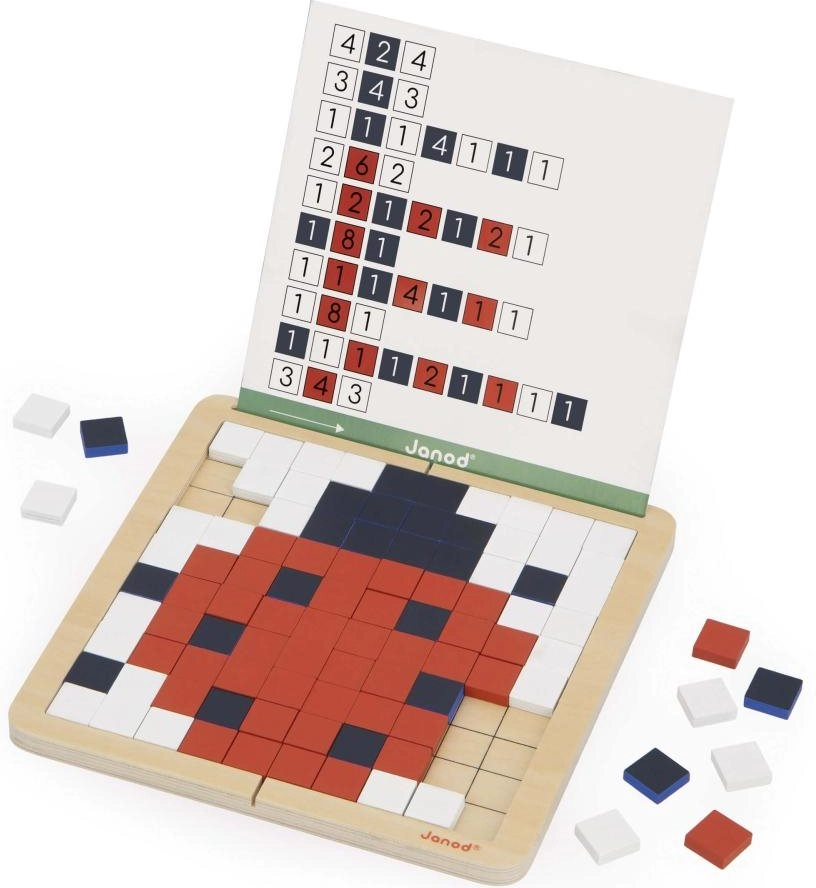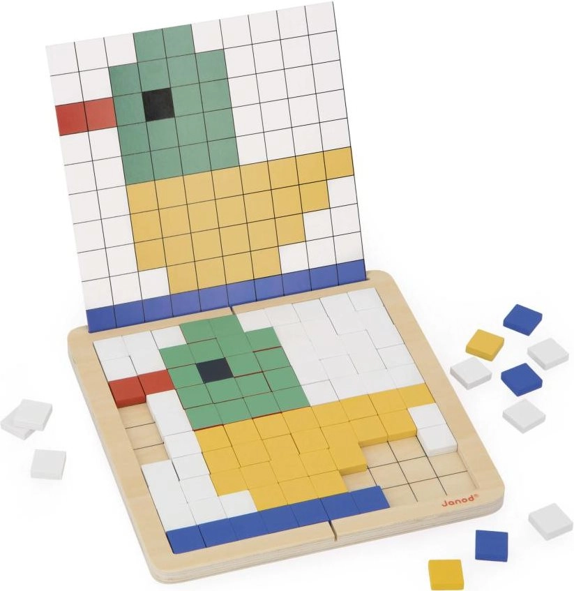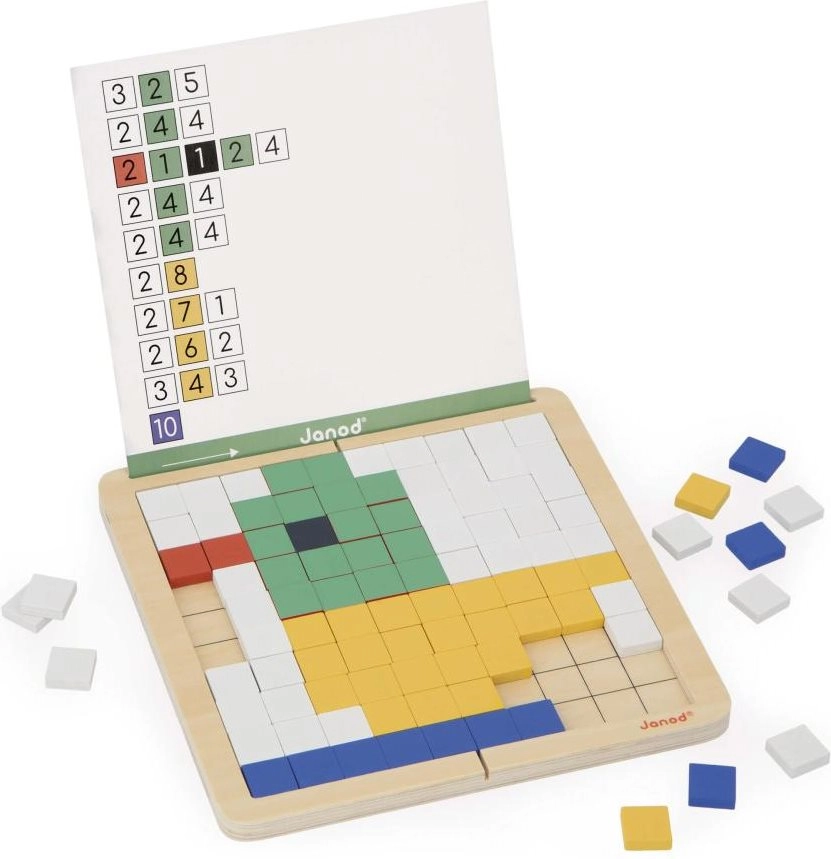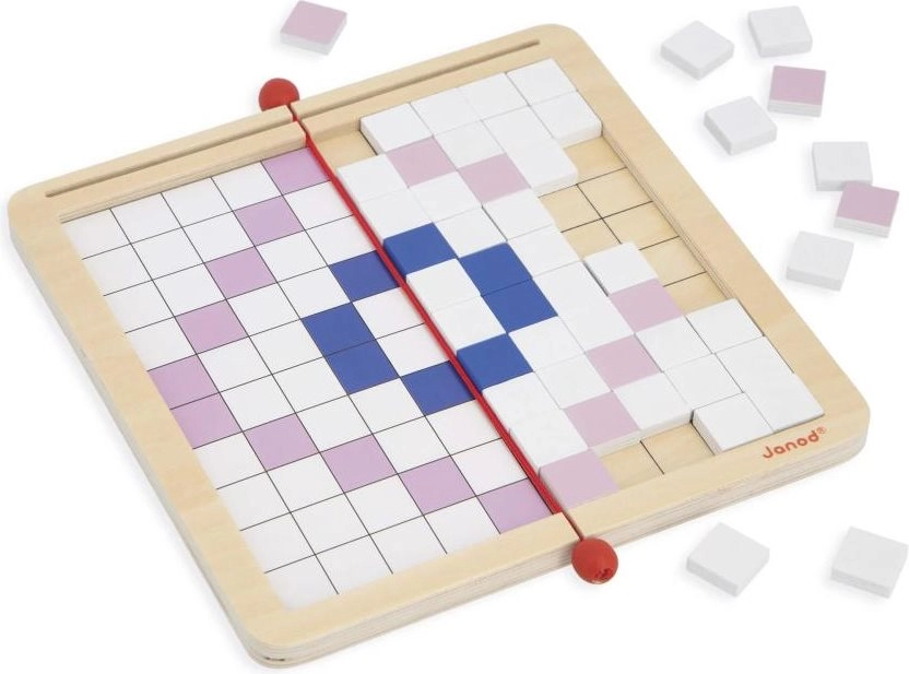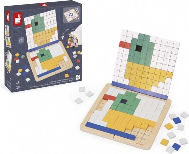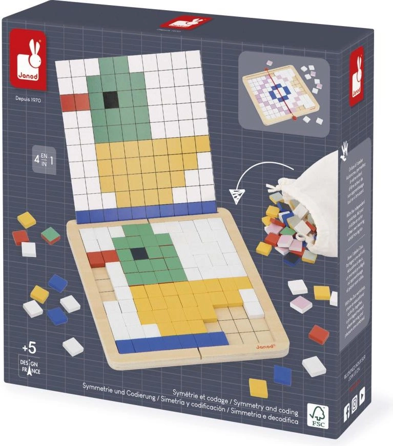 Razvijajte logiko, zbranost in prostorsko predstavo s kreativno mozaično igro znamke JANOD. Štirje načini igre – kopiranje, reprodukcija, simetrija in kodiranje – otroke učijo osnov algoritmičnega razmišljanja in dela z vzorci. Kakovostna lesena plošča, do 200 barvnih ploščic, obojestranske kartice z nalogami in praktična vrečka za enostavno shranjevanje.