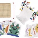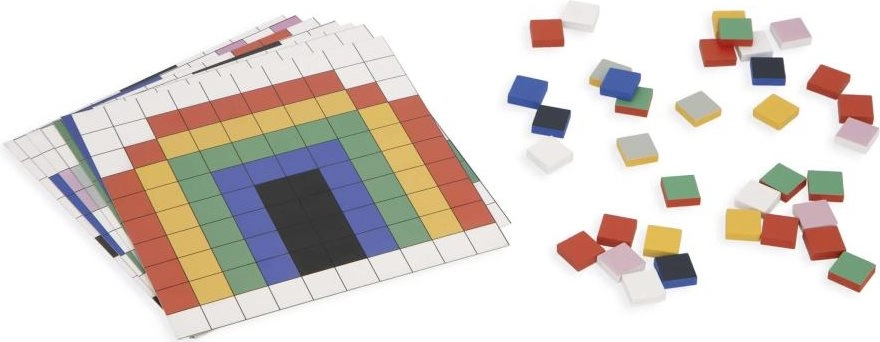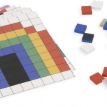 Veliko število koščkov omogoča ustvarjanje desetine motivov, urjenje prepoznavanja barv, štetja in fine motorike pri natančnem polaganju v mrežo.
