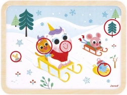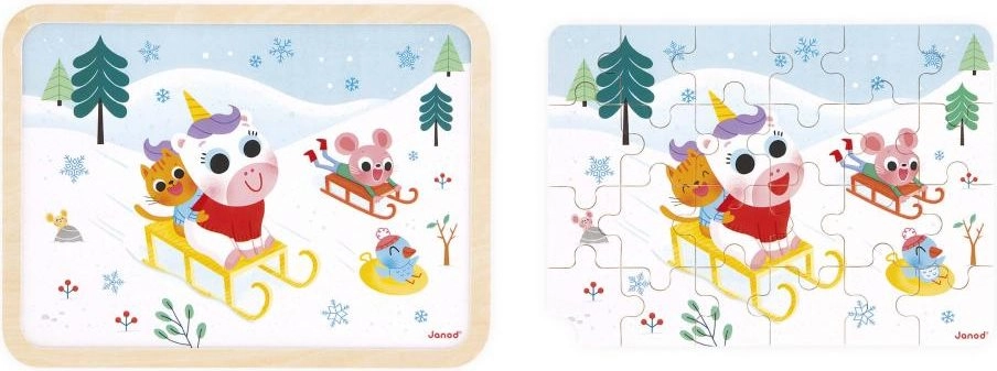 Lesene sestavljanke JANOD s sankarskim motivom so idealna izbira za prve sestavljanke. Zahvaljujoč trpežnim kosom in plošči z omejitvenim robom je rokovanje lažje, otroci pa hitreje dosežejo uspeh. Po dokončanju slike sledi zabaven izziv – najti razlike v primerjavi z izvirnikom, kar spodbuja zbranost in vizualno zaznavanje.
