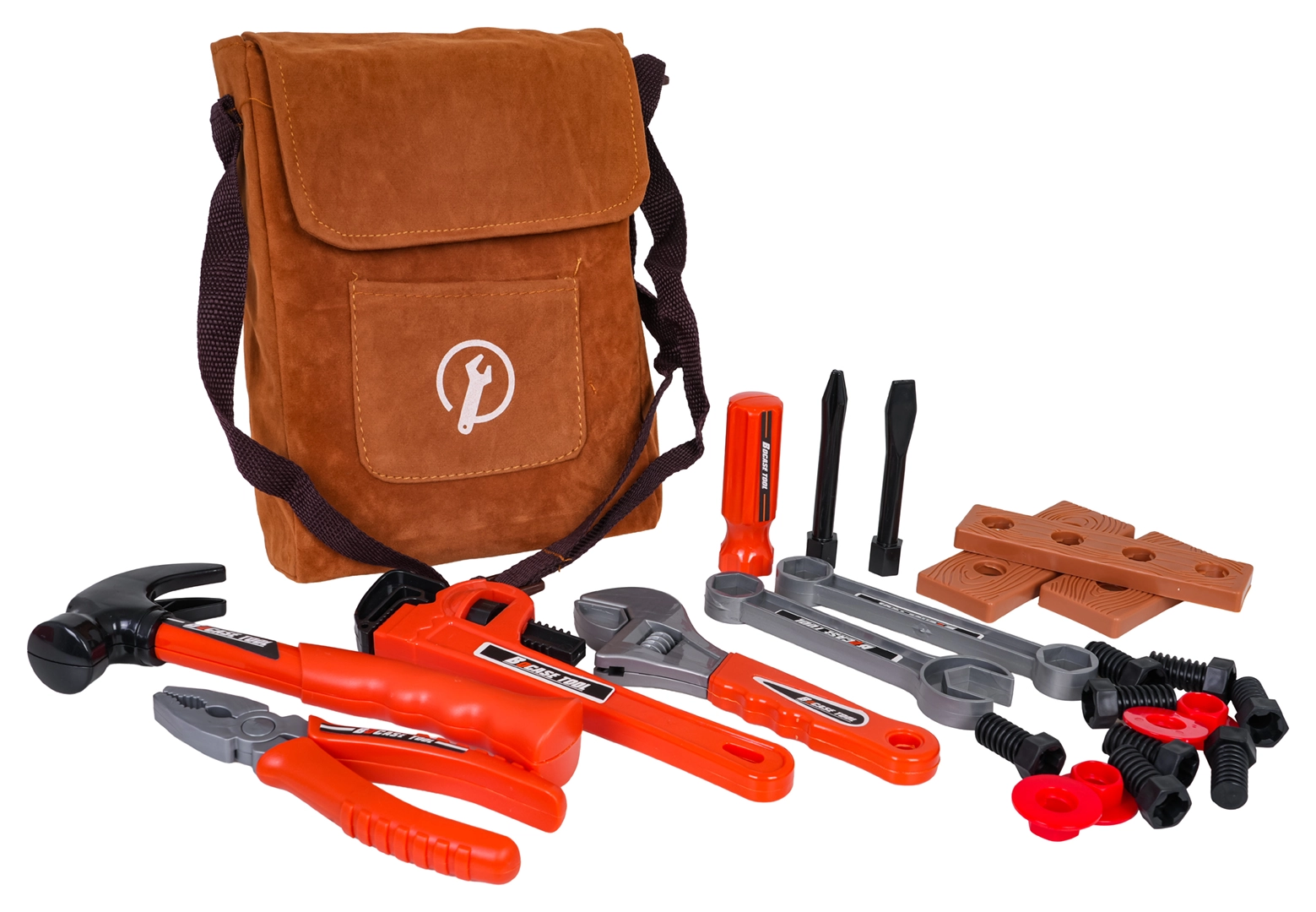 Ta otroški komplet orodja z naramnico je idealna izbira za male mojstrice in mojstre. Lahka in varna plastična orodja zvesto posnemajo prava, zato lahko otroci vadijo vijačenje, merjenje in zabijanje ter se pri tem učijo potrpežljivosti in zbranosti. Prostrana torba z nastavljivim trakom drži vse dele skupaj in je odlična doma in na poti.