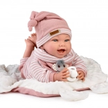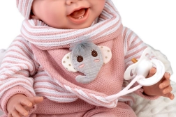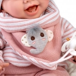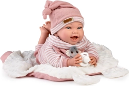 Obtežitveno polnilo v glavici in zadnjici (pribl. 1 800 g) zagotavlja naravno povešanje glavice in avtentičen občutek nege kot pri pravem dojenčku.