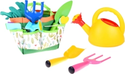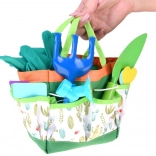 Ta otroški vrtnarski komplet ponuja vse, kar mali vrtnar potrebuje: predpasnik, rokavice, ščitnike, zalivalko, nastavek 2v1 za plastenko, štiri vrste ročnega orodja in označevalnike rastlin. Tekstilni dodatki v belo–zeleni kombinaciji s potiskom kaktusov in sukulentov niso le lepi, temveč tudi praktični, medtem ko torba–organizator z več žepi poskrbi, da so vse pripomočke vedno pri roki in pregledno shranjeni.