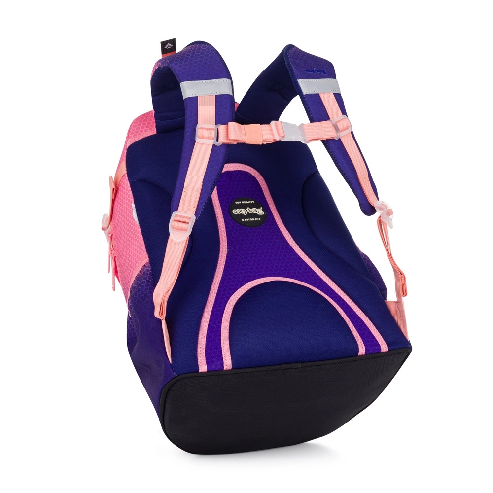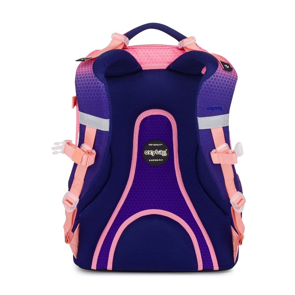 OXY Ombre Apricot je stilski šolski nahrbtnik z mehkim prelivom barv, ki očara na prvi pogled in hkrati izpolnjuje zahteve za zdravo in varno nošenje šolskih potrebščin. Anatomsko oblikovan hrbtni panel, mehko oblazinjene naramnice in nastavljiv prsni pašček razporejajo obremenitev in podpirajo pravilno držo telesa.