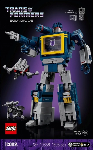 Zgradite ikoničnega Decepticona SOUNDWAVE in ga razstavite kot stilsko dekoracijo. Ta vrhunski set za odrasle prinaša podrobno izdelavo, premične okončine in možnost preobrazbe v kasetni predvajalnik brez razstavljanja modela. Ne manjkajo minifigure RAVAGE in LASERBEAK v obliki kaset, zvočni efekti z aktivacijo na gumb ter informativna ploščica za popolno razstavitev.