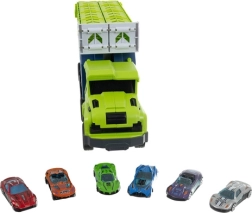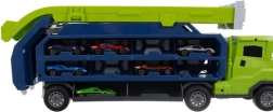Velik transportni tovornjak, ki se spremeni v dvojno dirkalno progo, otrokom prinaša ure akcijske zabave. Vključuje 6 kovinskih avtomobilčkov, shranjevanje neposredno v vlačilcu in hitre zložljive rampe za dvopasovne dirke. Zahvaljujoč trenju pogona avtomobilčki sami peljejo po potisku, varna zasnova iz kakovostnih materialov pa zagotavlja brezskrbno igro.