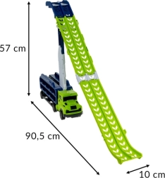 Tovornjak sprejme več avtomobilčkov, zato lahko otroci odnesejo dirke kamorkoli. Enostavno zlaganje, trdna konstrukcija in gladka kolesa.