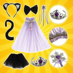 Ta črn mačji kostum blagovne znamke KRUZZEL vsako deklico spremeni v elegantno mačjo damo. Zahvaljujoč univerzalni velikosti za 3–10 let odlično pristaja, je zelo lahek in udoben ter se odlično prilega za karneval, rojstnodnevne zabave in otroške nastope. Materiali so prijetni in ne omejujejo svobode gibanja.
