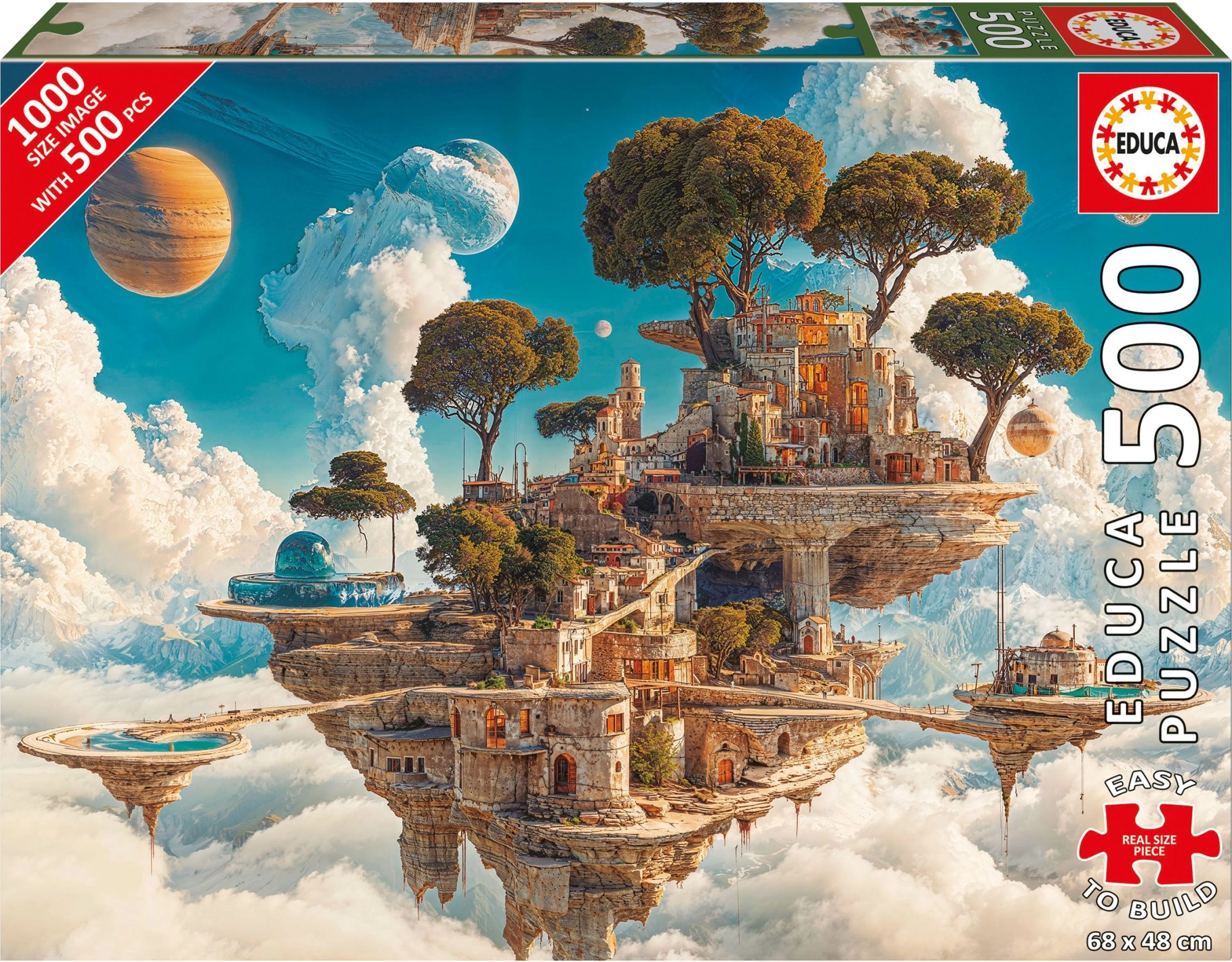 Odkrijte čar sestavljanja s sestavljanko EDUCA z motivom Kraljestvo oblakov s 500 koščki. Del pakiranja je brezplačno lepilo za fiksiranje končne slike. Sestavljena slika meri pribl. 68 × 48 cm, idealno za uokvirjanje in dekoracijo.