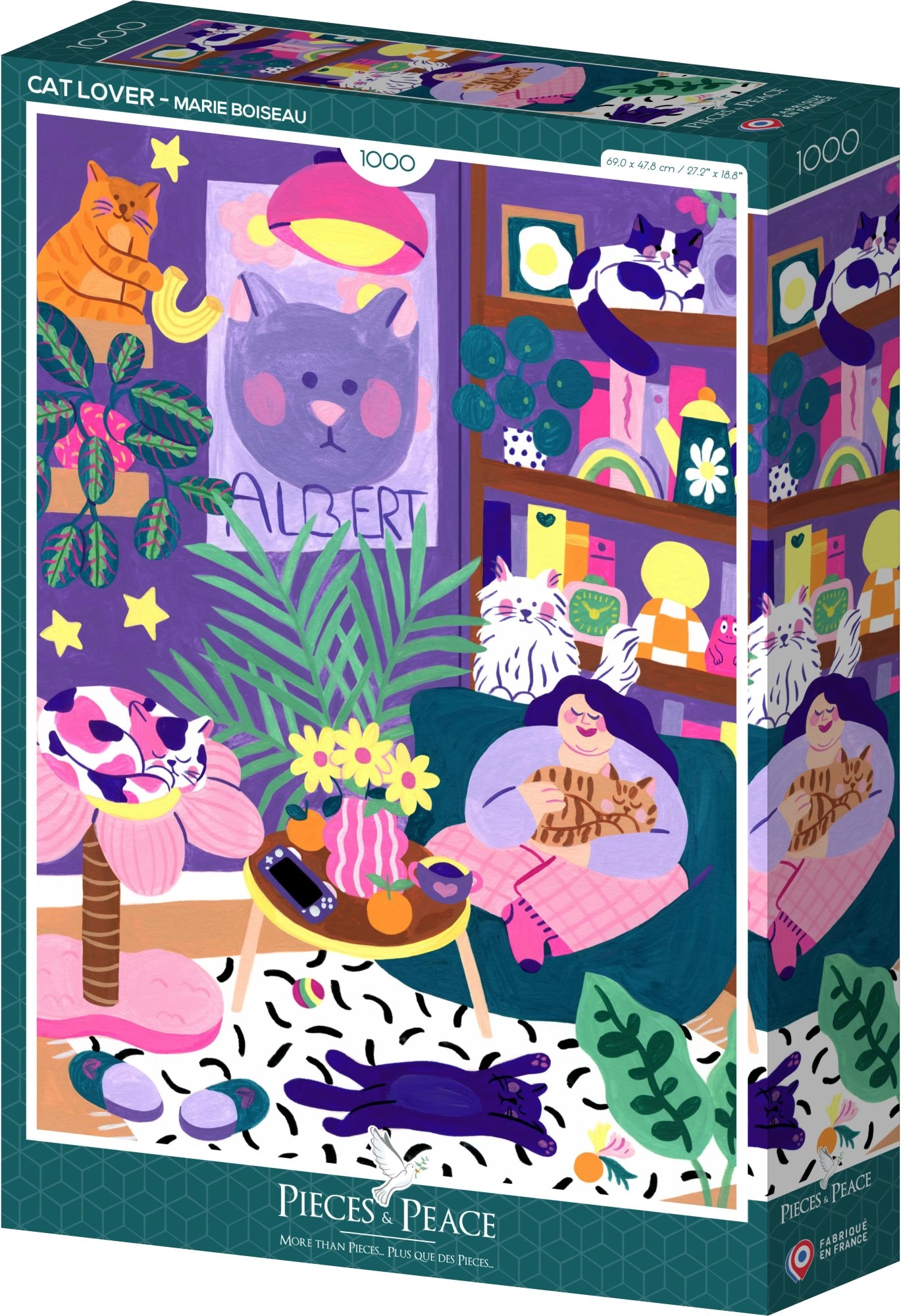 Potopite se v svet mačk in sestavite podroben motiv iz 1000 koščkov. Dimenzija sestavljene slike je približno 47,8 × 69 cm, zato bo končana sestavljanka lepo izstopala na steni ali na polici v okviru.