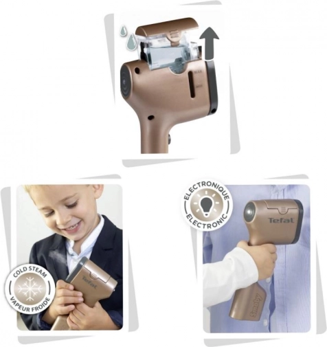 Otroški ročni parni likalnik za oblačila TEFAL prinaša realistično igro ter razvija fino motoriko in smisel za red. Zahvaljujoč preprostemu upravljanju z gumbom in pravi pari si lahko otroci varno preizkusijo “glajenje” gub na oblačilih za punčke ali otroških kostumih.