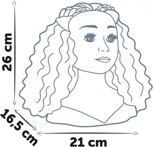 Stabilen podstavek s priseski drži glavo trdno na mizi, zato se lasje lažje urejajo. Vseh 23 kosov dodatkov preprosto pospraviš v skrivni prostor v podstavku, da je vse vedno pri roki in brez nereda. Višina glave 26 cm je idealna za otroške roke in prve frizerske poskuse.