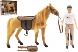 Ta čudovit komplet otrokom prinaša veliko zabave in domišljije. Plišasti konj z uzdo in sedlom je pripravljen na ježo, medtem ko lahko gibljiv fantek zlahka zavzame različne poze. Zahvaljujoč glavničkom v pakiranju lahko otroci češejo grivo in rep ter skrbijo za konjička kot za pravega.