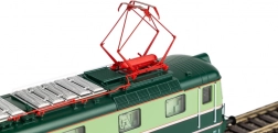 Dva kovinska škarjasta odjemnika toka, okrogli odbijači in bogata detajlna oprema strehe ter ohišja zagotavljajo verno podobo lokomotive ČSD.