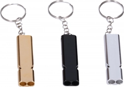 Ta obesek za ključe z dvojno piščalko združuje kompaktne dimenzije z visoko prodornostjo zvoka. Zaradi dveh tonskih komor oddaja močan in jasen signal, ki je dobro slišen tudi v hrupnem okolju. Primeren kot varnostni pripomoček za otroke, tekače, popotnike in lastnike psov.