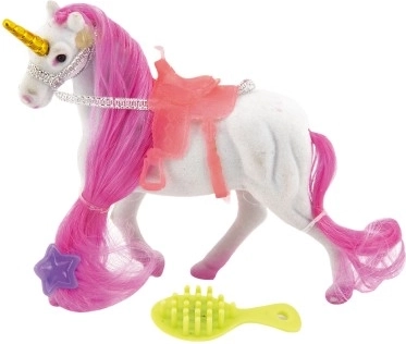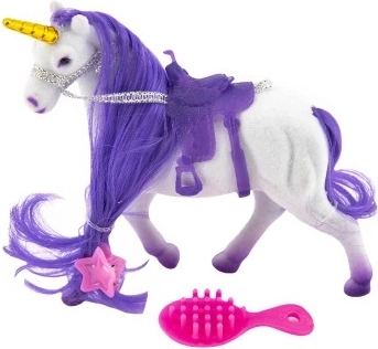 Ta eleganten samorog bo navdušil vsakega otroka, ki ljubi čarobna bitja in svet domišljije. Zaradi mehke žametne površine in grive za česanje bodo mali frizerji uživali v obilici ustvarjalne zabave. V kompletu so tudi dodatki za urejanje grive ter sedlo za udobne ježe v domišljijskem svetu.