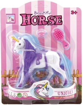 Izbirate lahko med belim samorogom z vijolično ali rožnato grivo. Obe različici dopolnjujeta zlat rog in modni dodatki.