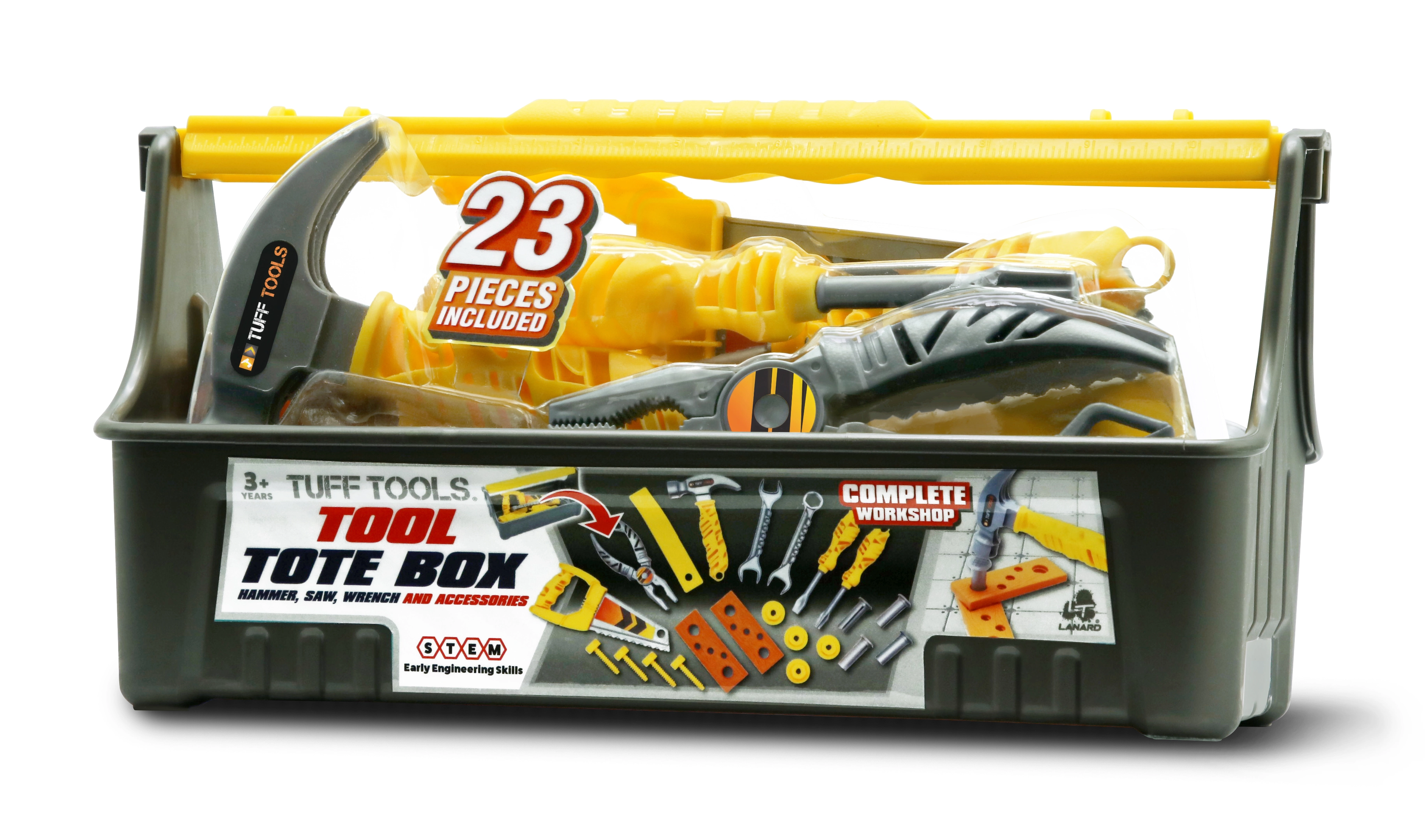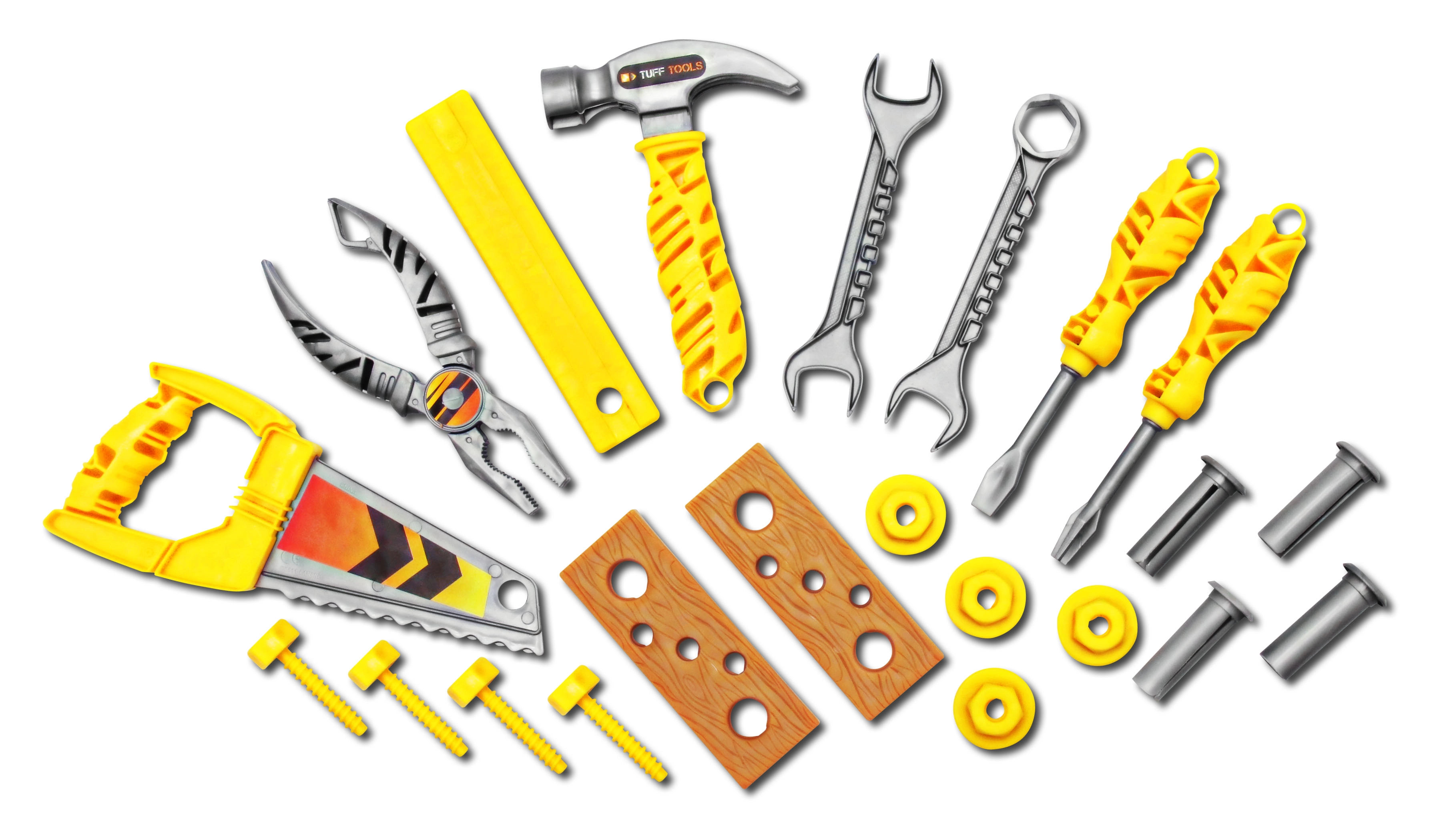 Otroški set Tuff Tools v trpežnem kovčku ponuja bogato opremo za realistično igro. Zahvaljujoč jasno rumenim in sivim delom si otroci zlahka osvojijo osnovne spretnosti, kot so vijačenje, zabijanje in sestavljanje. Odstranljiv ročaj deluje kot ravnilo, kar podpira natančnost in razvoj fine motorike.