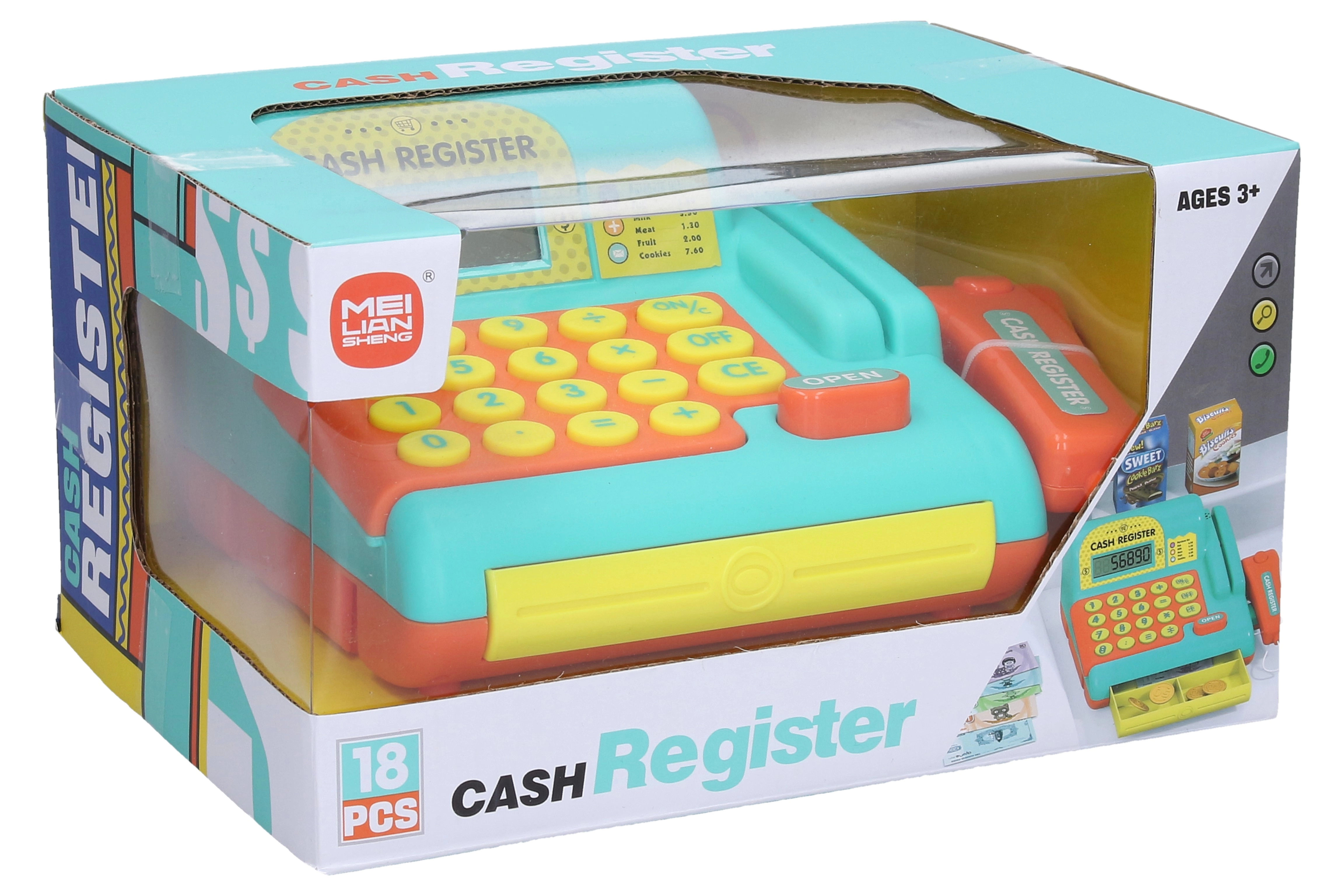 Blagajna oddaja realistične učinke, ki igri dodajo avtentičnost. Primerna je za otroke, ki radi posnemajo odrasle in odkrivajo svet nakupovanja. Pripravljena za uporabo po vstavitvi baterij.