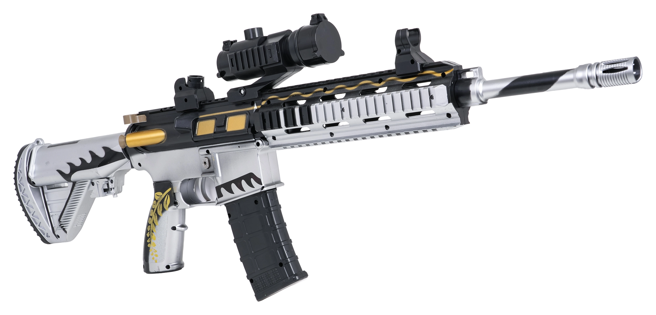 Uživajte v akcijski zabavi z gel pištolo M416, ki uporablja posebne hidrogelne kroglice. Po zadetku se kroglice razpadejo, zato ne puščajo nereda kot klasični izstrelki. Orožje omogoča preklapljanje med ročnim in avtomatskim načinom, tako da lahko slog igre zlahka prilagodite. Nastavljiv merek z lupo pomaga natančno meriti na različne razdalje.