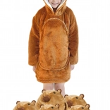 Ta otroška pulover odeja s kapuco v dizajnu kapibare je kot objem, ki greje od glave do pet. Notranja plast iz sherpa flisa je puhasta in topla, medtem ko je zunanja stran iz mehkega flanela žametna na dotik. Zahvaljujoč oversize kroju se otroci počutijo udobno pri gledanju TV, igri in počitku.