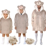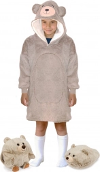Ta topla pulover odeja MEDVED znamke Cozy Noxxiez je nepogrešljiv spremljevalec za vse male ljubitelje udobja. Izdelana iz ultra mehkega flanela in znotraj podložena s puhastim sherpa flisom nudi prijetno toplino od glave do kolen. Zahvaljujoč prostornemu kroju ne omejuje gibanja, zato jo bodo otroci oboževali doma ob risankah, pri branju ali med igro.