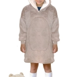 Velika kapuca z medvedjimi ušeski in igriv videz naredita pulover odejo priljubljen kos za otroke – hkrati stilski in funkcionalen.