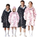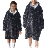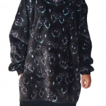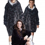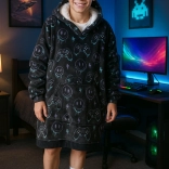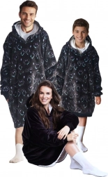 Ta prevelika jopasta odeja s kapuco greje ob vsaki priložnosti – doma pred televizijo, pri igranju ali zunaj ob tabornem ognju. Notranja plast iz sherpa flisa je izjemno topla in mehka, zunanji flanel pa prijetno nežen na otip. Ohlapen kroj ne omejuje gibanja in nudi prijeten, topel prostor za počitek.