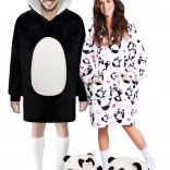 Velika kapuca s pandinim motivom, dolgi rokavi in ohlapen kroj omogočajo udobje brez omejevanja gibanja ter odlično pristajajo različnim postavam.