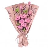 Odkrijte čar japonske SAKURE v obliki ročno izdelanega šopka. Komplet vsebuje barvite kosmate žičke, dekorativne pestiče, floristični trak, papir za zavijanje šopka in vrvico – skratka vse, da lahko takoj začnete ustvarjati. Končni šopek deluje elegantno, njegova nežna tekstura pa izstopa tako v modernem kot tudi v tradicionalnem interierju.