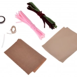 V kompletu najdete različne barve materialov, papir za zavijanje šopka, vrvico in trak. Priložen je tudi slikovni vodič – le odprite in začnite ustvarjati.