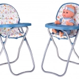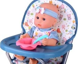 Stabilen zložljiv stolček s pladnjem ter prostorom za skodelico in pribor. Podpira realistično igro hranjenja in obedovanja s punčko.