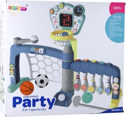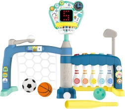 Večnamenski športni set 5-v-1 je moderna igrača, ki otrokom prinaša veliko gibanja in veselja. Otrok lahko preizkusi pet disciplin – nogomet, košarko, balinčke/kegljanje, golf in baseball – ter odkriva svoje športne talente. Interaktivna LED tabla s točkovanjem in zvoki spremlja napredek in motivira k novim dosežkom, medtem ko nastavljiv koš omogoča prilagoditev igri starosti in višini otroka.