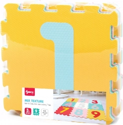 Komplet mehkih penastih blokov z odstranljivimi številkami je idealen za otroške sobe in igralne kotičke. Posamezni deli velikosti 32 × 32 cm tvorijo udobno, varno in enostavno čistljivo površino, ki ščiti pred mrazom in manjšimi padci. Zahvaljujoč kontrastnim številkam se otroci na zabaven način učijo prepoznavanja številk in urijo koordinacijo oko–roka.