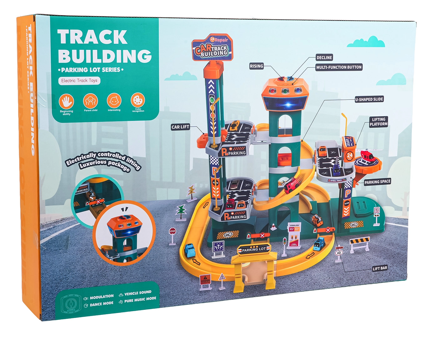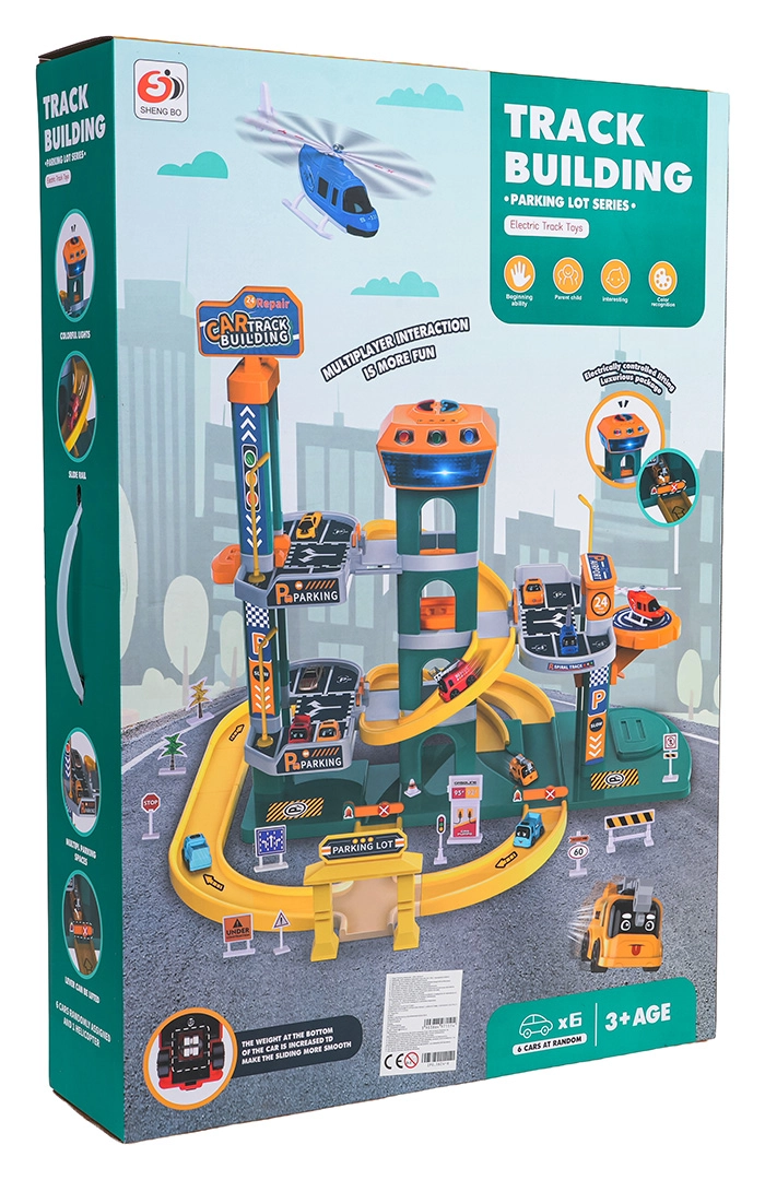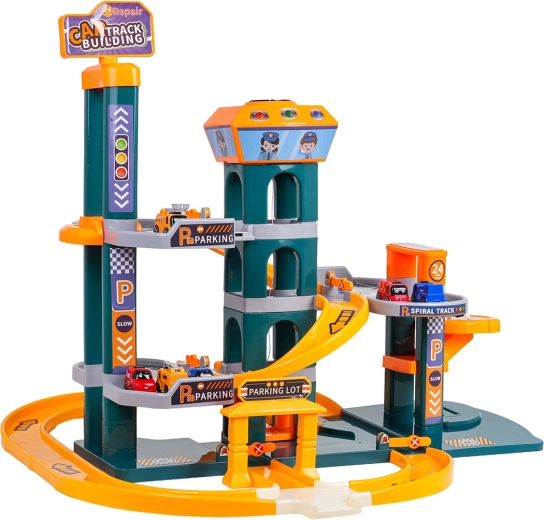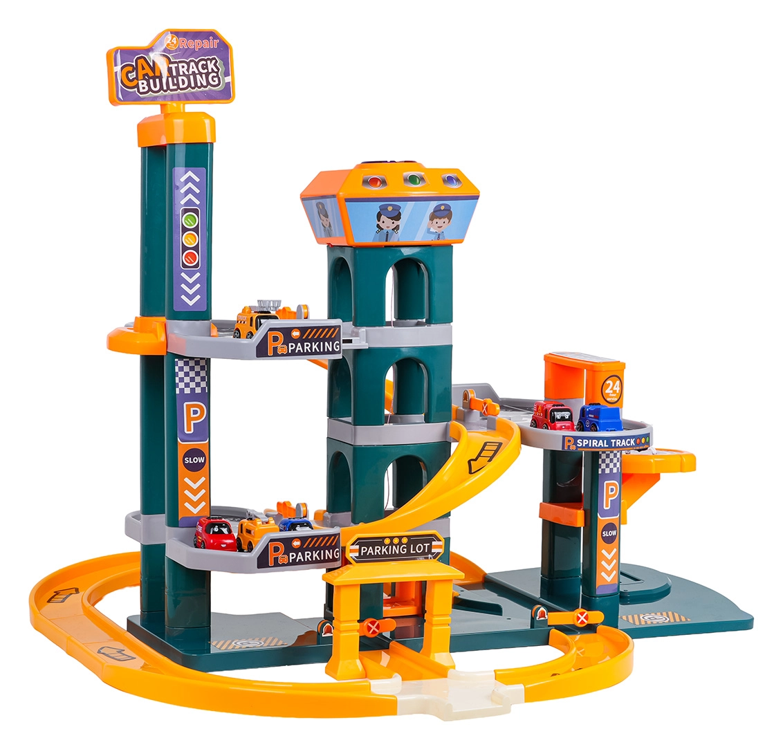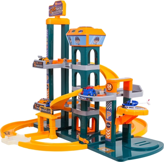 Različne poti, spusti in parkirna mesta spodbujajo ustvarjalno igro in dirkanje. Otroci lahko izmenjujejo vožnjo z dvigalom in spust po zaviti progi.
