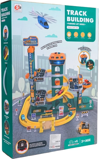Odkrijte veliko dvonadstropno parkirišče za otroke od 3 let z svetlobnimi in zvočnimi učinki, samodejnim dvigalom in bogatim priborom. Barvit komplet iz kakovostne, varne plastike ponuja spiralne spuste, upravljalno ploščo z veselimi melodijami, zvoki vozil in utripajočimi gumbi ter tudi 6 avtomobilčkov in helikopter za ure ustvarjalne zabave.