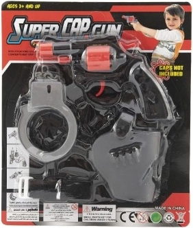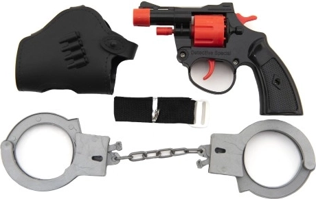 Ta otroška pištola na kapsule prinaša veliko varne zabave in spodbuja domišljijo pri igrah policistov. Del kompleta sta praktičen tok za pas in plastične lisice, ki poskrbijo za še bolj avtentično igralno izkušnjo. Zaradi kompaktne velikosti 13 cm pištola dobro leži tudi v manjših rokah.