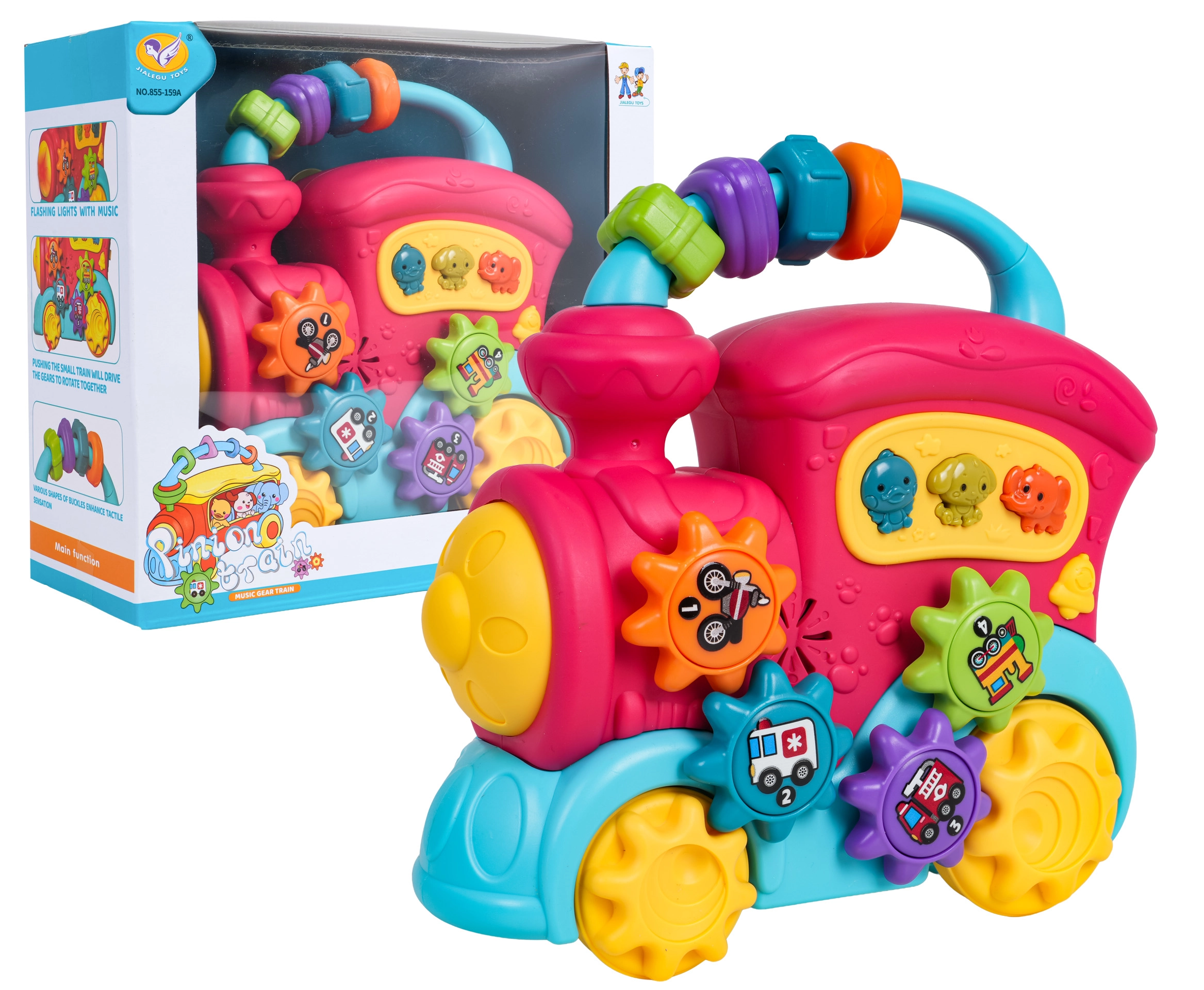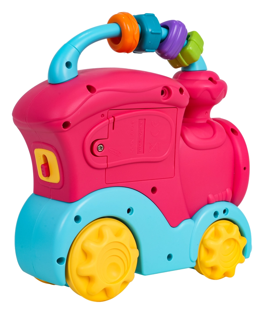 Igrača je zasnovana za varno igro od 12 mesecev, ima dvostopenjsko nastavitev glasnosti in z živahnimi barvami podpira vizualno zaznavanje. Ergonomski ročaj olajša prenašanje in potiskanje po tleh. Vlakec napajajo 3× AA 1,5 V (niso priložene).