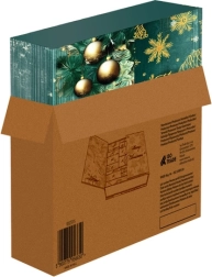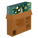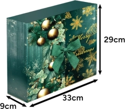 Trd laminiran karton v zeleno‑zlati kombinaciji in tekstilna pentlja ga spremenita v dekorativni element praznikov. Odlično izgleda pod jelko ali na komodi.