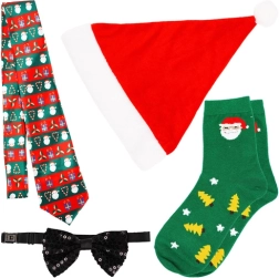 Domine, nerjaveči kozarčki za žgano pijačo in modni dodatki, kot so kravata, nogavice, kapa in bleščeč metuljček – vse v prazničnem duhu.
