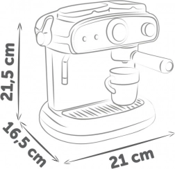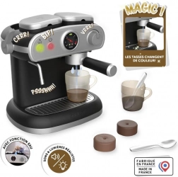 Povabite otroke v svet dišeče kavarnice s kompaktnih dimenzij otroškim espresso kavnim aparatom, ki izgleda in deluje kot pravi. Realistični svetlobni in zvočni učinki spodbujajo domišljijo in razvijajo socialne veščine med igro. Čarobne skodelice, ki menjajo barvo ob stiku s hladno vodo, dodajo vsakemu »ekspresu« zabaven šov.