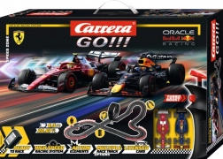Zgradite si svojo idealno progo dolžine 6,3 m z dimenzijami po sestavi 175 × 122 cm. V paketu najdete vse za takojšnji začetek: dve licenčni formuli F1 (ORACLE RED BULL RACING RB21 »M. Verstappen, No.1« 2025 in FERRARI SF-25 »L. Hamilton, No.44« 2025), napajalni del, mehanski števec krogov in dvojico upravljalnikov s funkcijo Turbo.