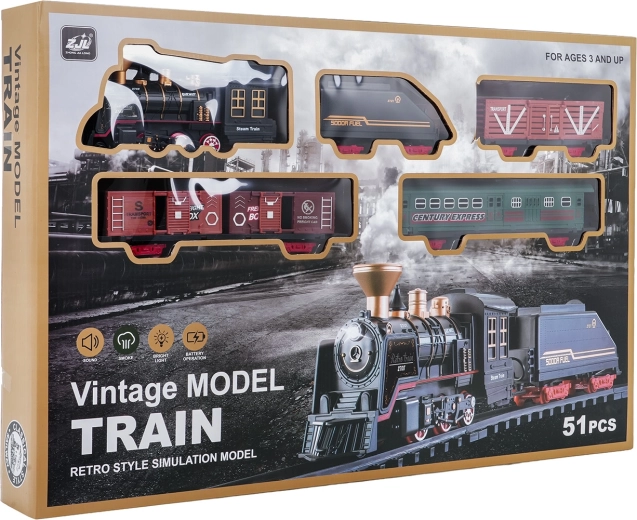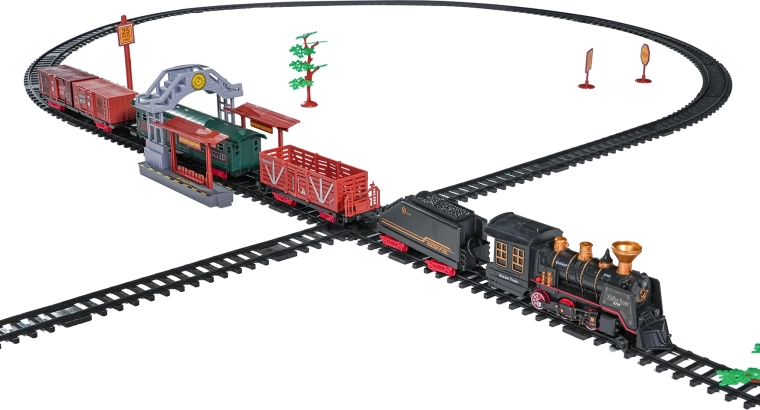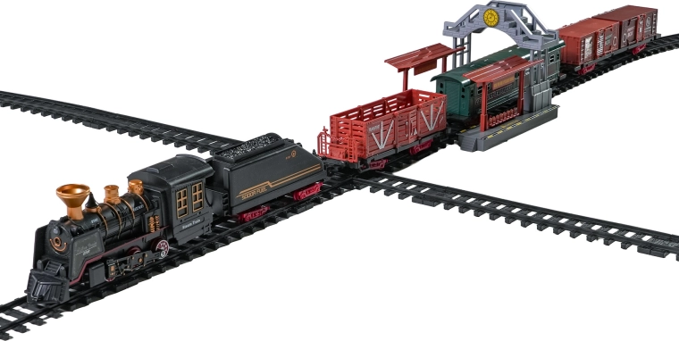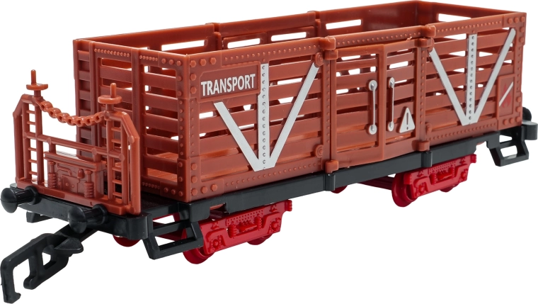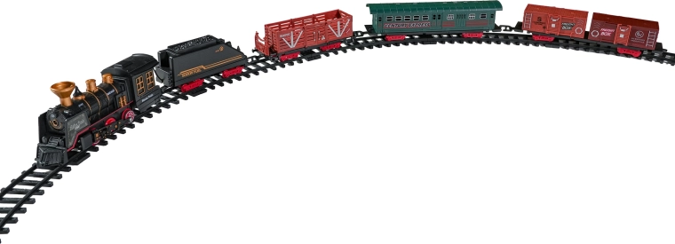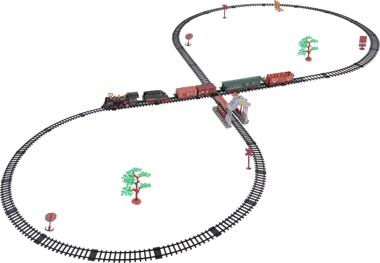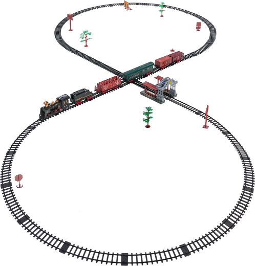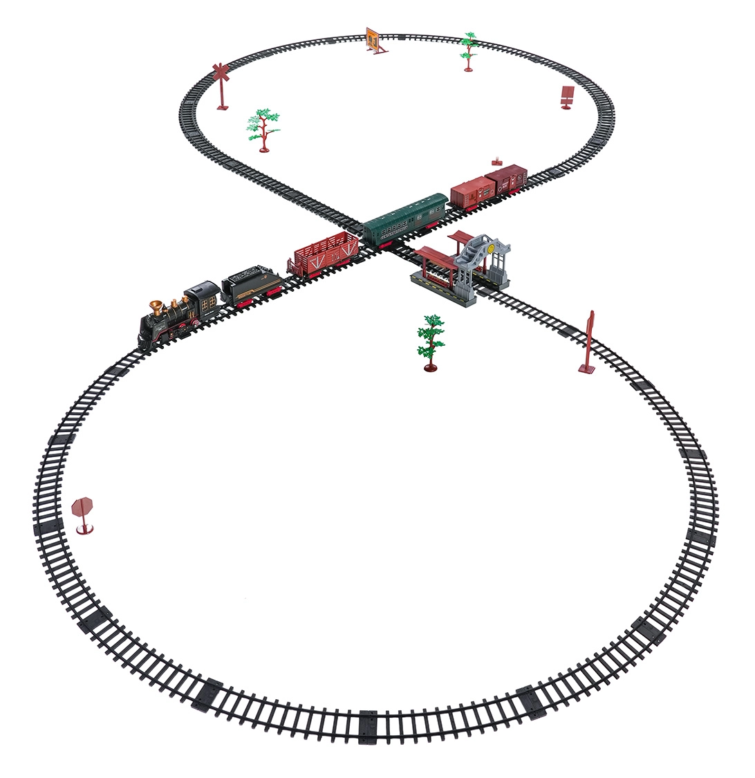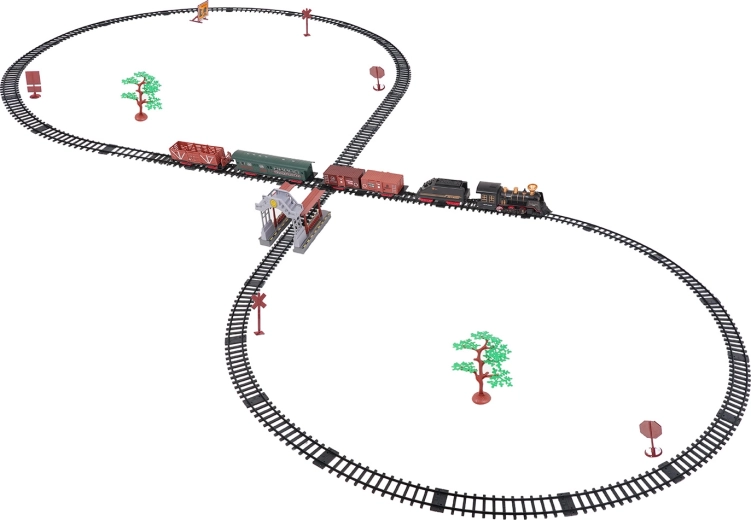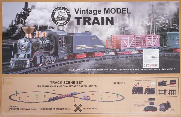 Del paketa je celoten vlakovni komplet z lokomotivo, tenderjem, potniškim in tovornimi vagoni, kompletom tirov ter tematskimi dodatki, kot so drevesca in prometni znaki. Komplet spodbuja domišljijo, fino motoriko in potrpežljivost ter je idealno darilo za male ljubitelje železnic.