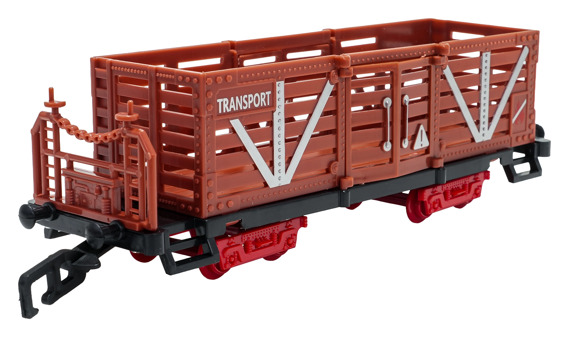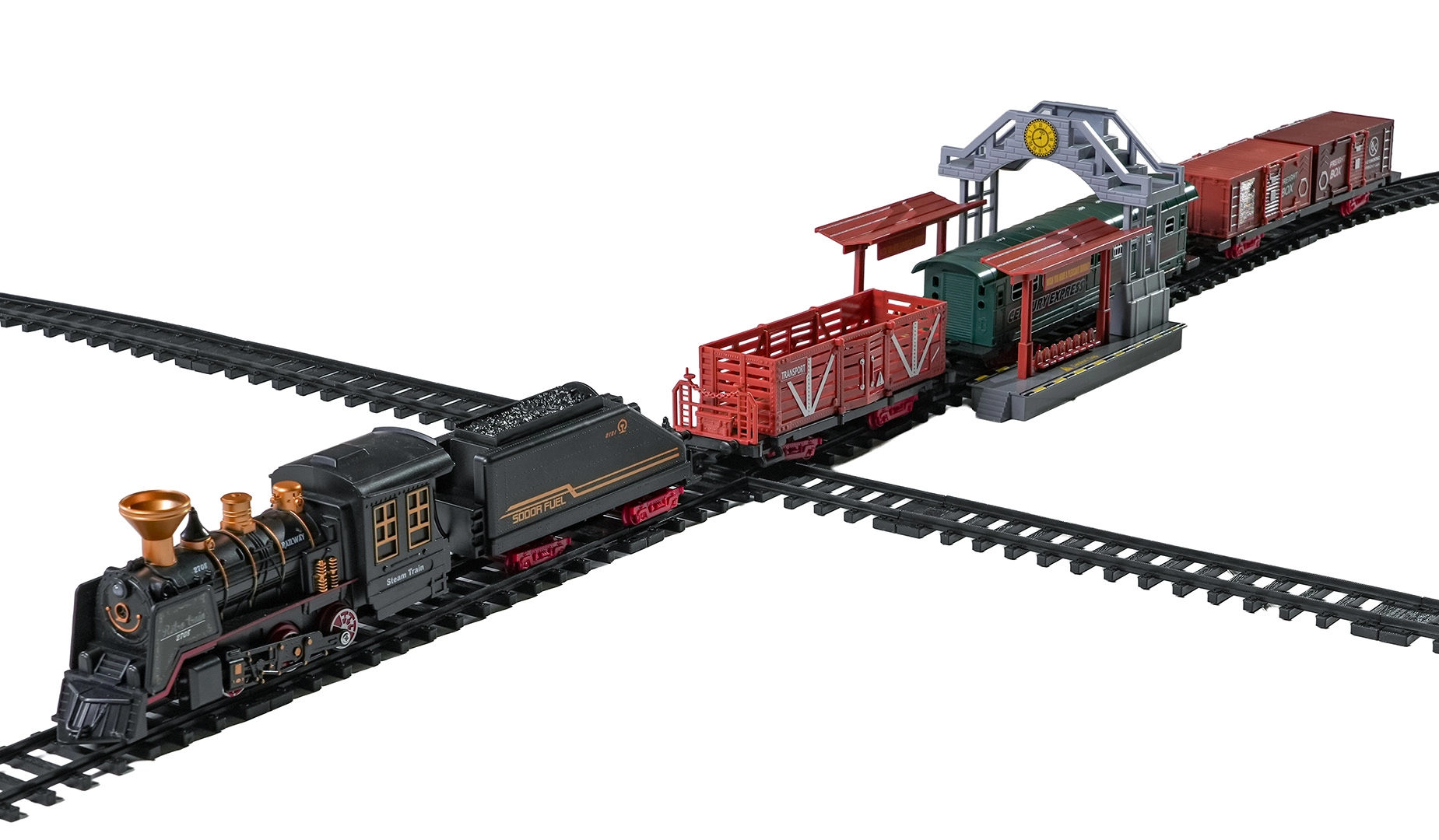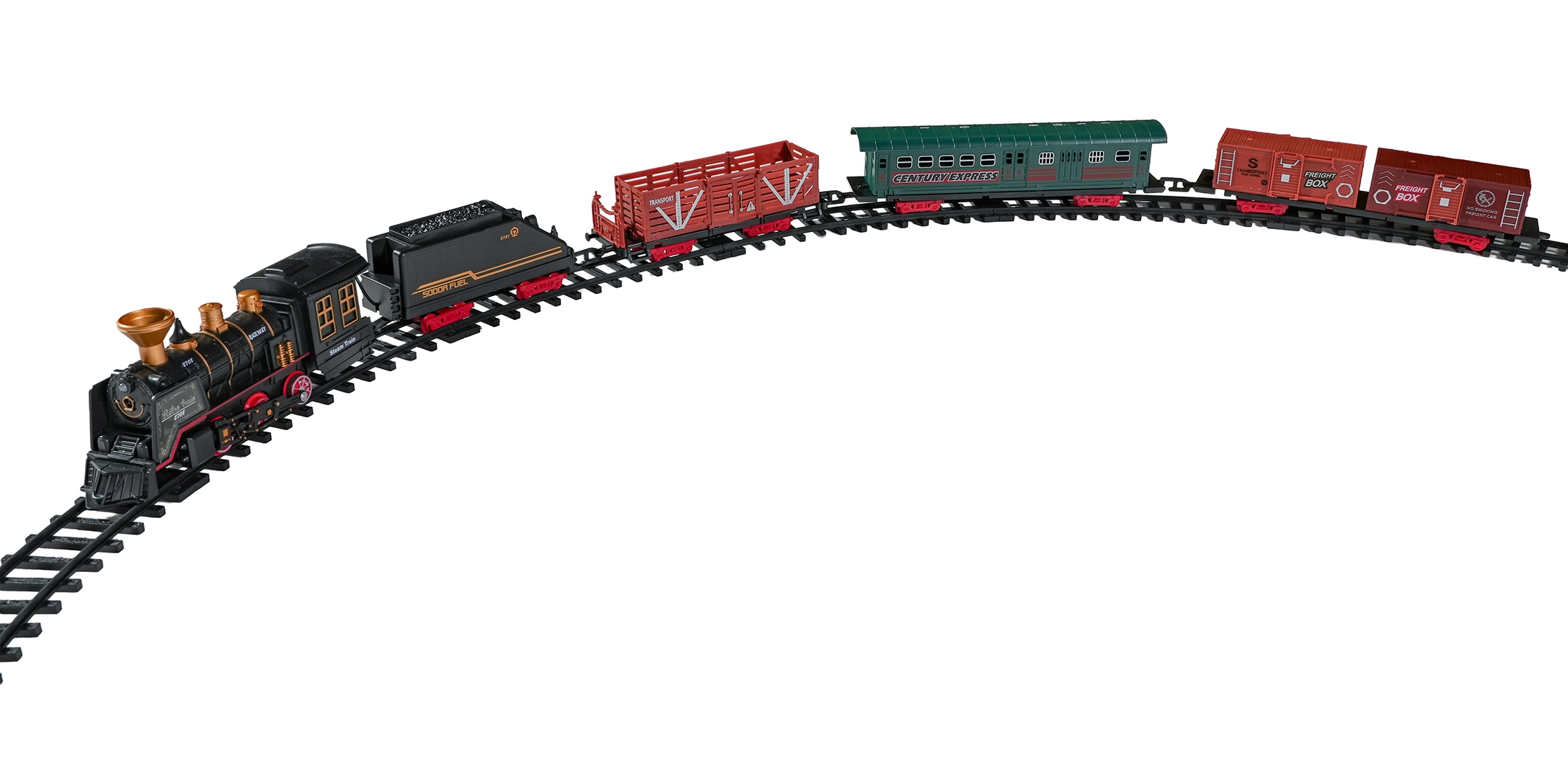 Del paketa je celoten vlakovni komplet z lokomotivo, tenderjem, potniškim in tovornimi vagoni, kompletom tirov ter tematskimi dodatki, kot so drevesca in prometni znaki. Komplet spodbuja domišljijo, fino motoriko in potrpežljivost ter je idealno darilo za male ljubitelje železnic.