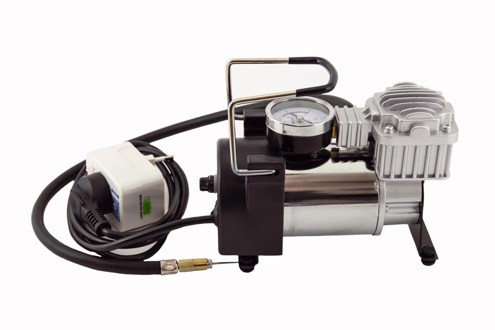 Praktičen domači pomočnik, s katerim preprosto in hitro napihnete pnevmatike avtomobila ali kolesa, športne žoge, vodne igrače ali vzmetnice. Robusten kovinski trup, vgrajen manometer in stabilne gumijaste nogice zagotavljajo varno in udobno delovanje. Zahvaljujoč pretoku 35 l/min dosežete želeni tlak v hipu.