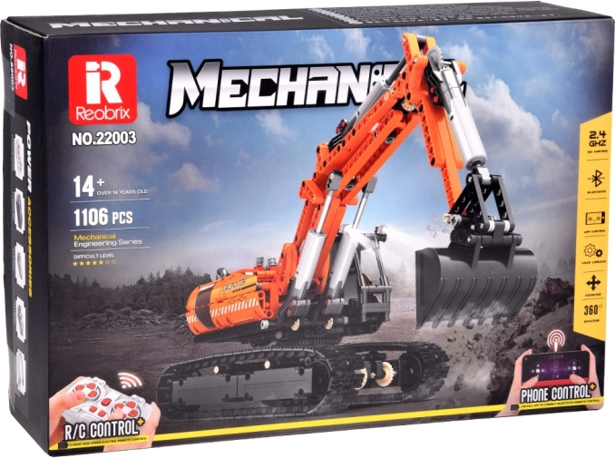 Ta komplet združuje ustvarjalno sestavljanje z realističnimi funkcijami gradbenih strojev. Po sestavi dobite robusten gosenični bager s podrobnim mehanizmom roke, žlice in 360° vrtenjem celotne nadgradnje. Upravljanje je intuitivno – bodisi prek 2,4 GHz daljinskega upravljalnika bodisi udobno z telefonom preko Bluetooth aplikacije.