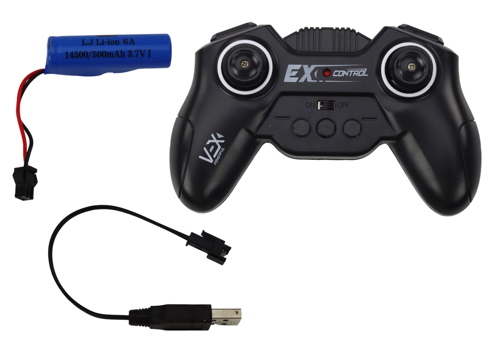V paketu najdete upravljalnik, Li‑ion akumulator 3,7 V, USB polnilni kabel. Dovolj je vstaviti baterije v upravljalnik in se odpeljati.