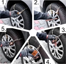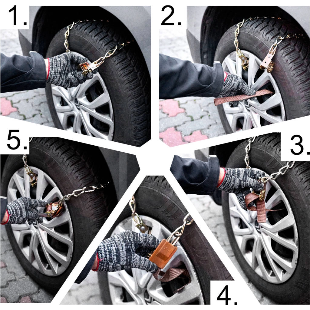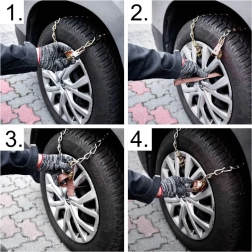 - 8× snežna veriga, rokavice, ključ, shranjevalni vreček