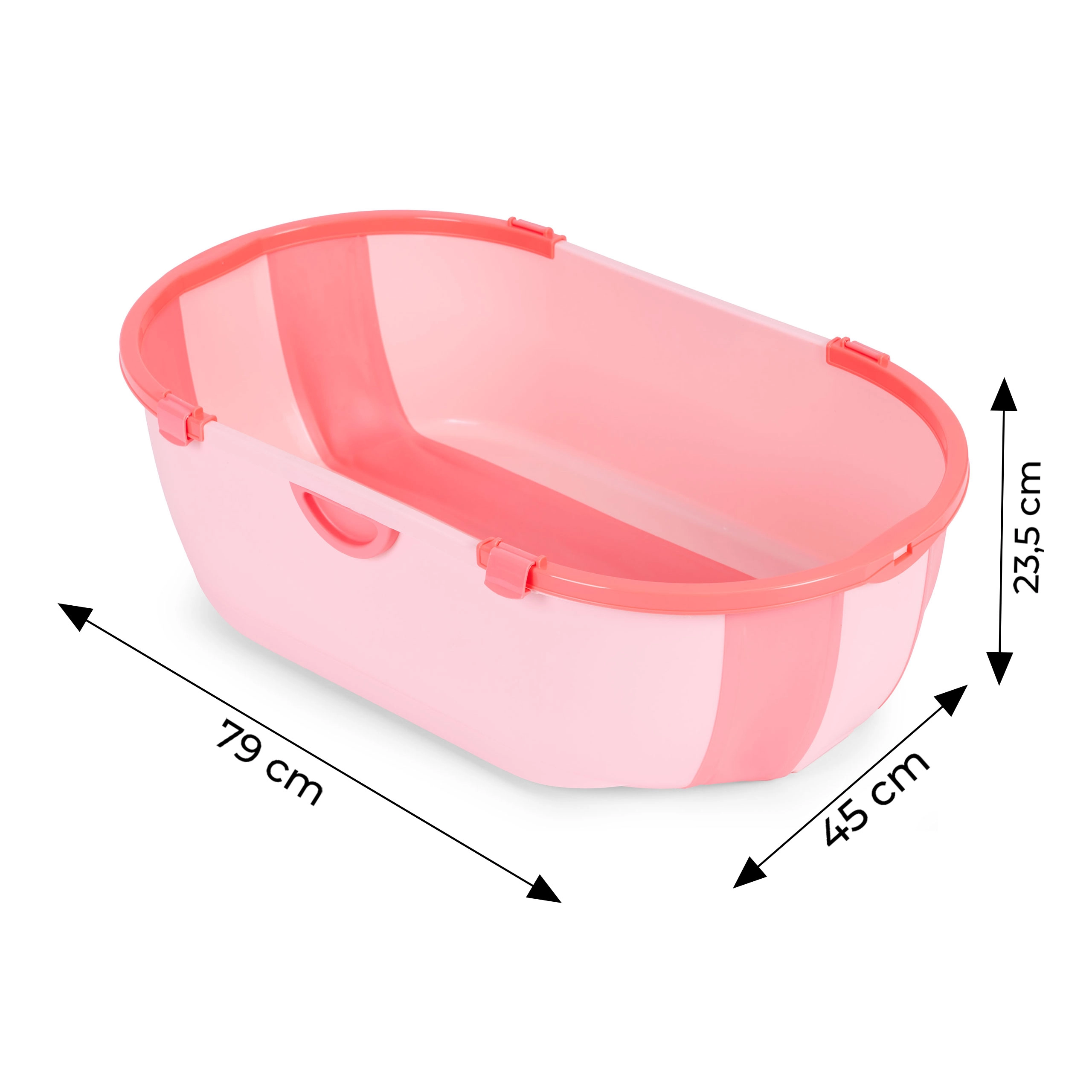 Kompaktna zasnova prihrani prostor v kopalnici in prtljažniku. Banjica je lahka, enostavna za prenašanje in pripravljena za uporabo v hipu.